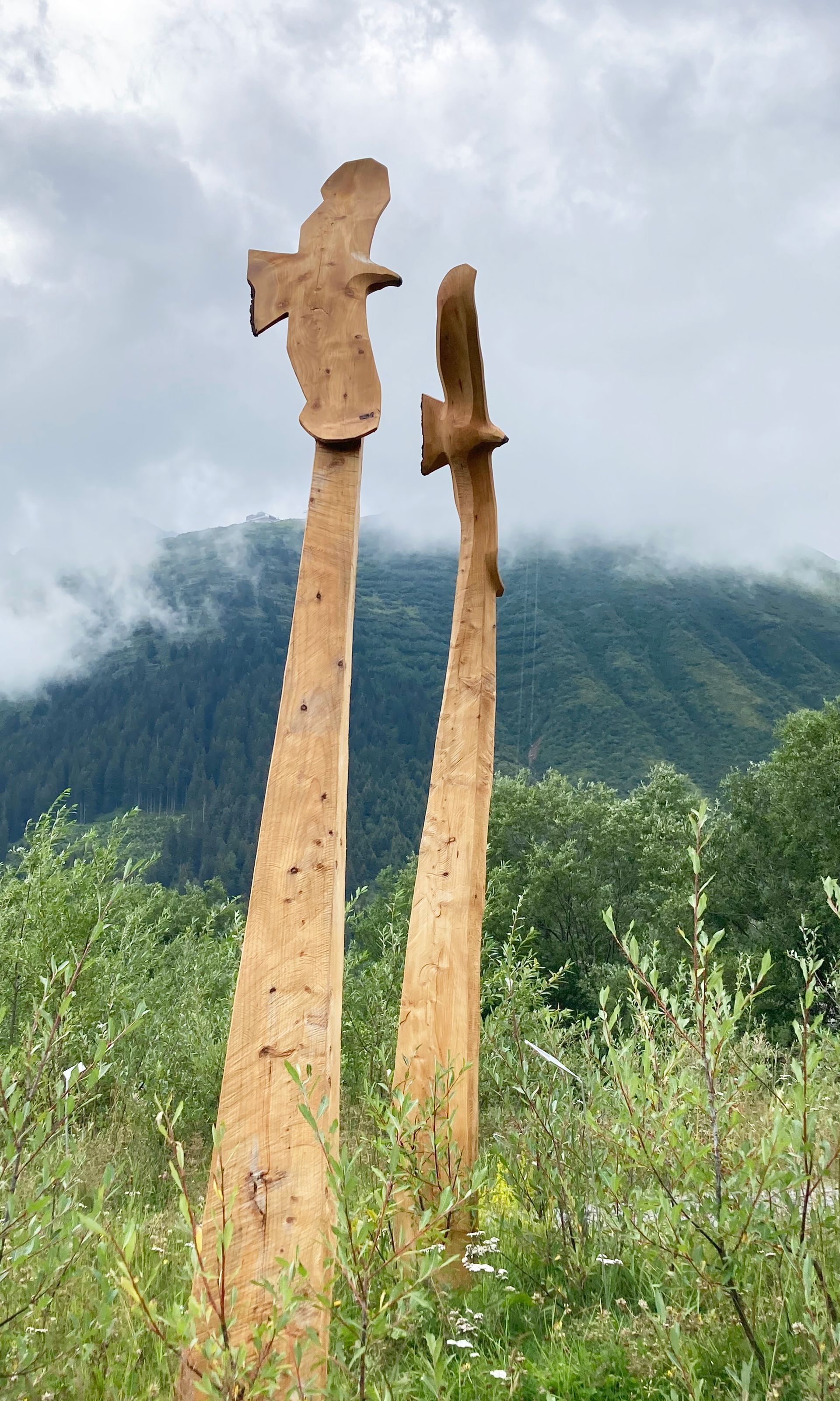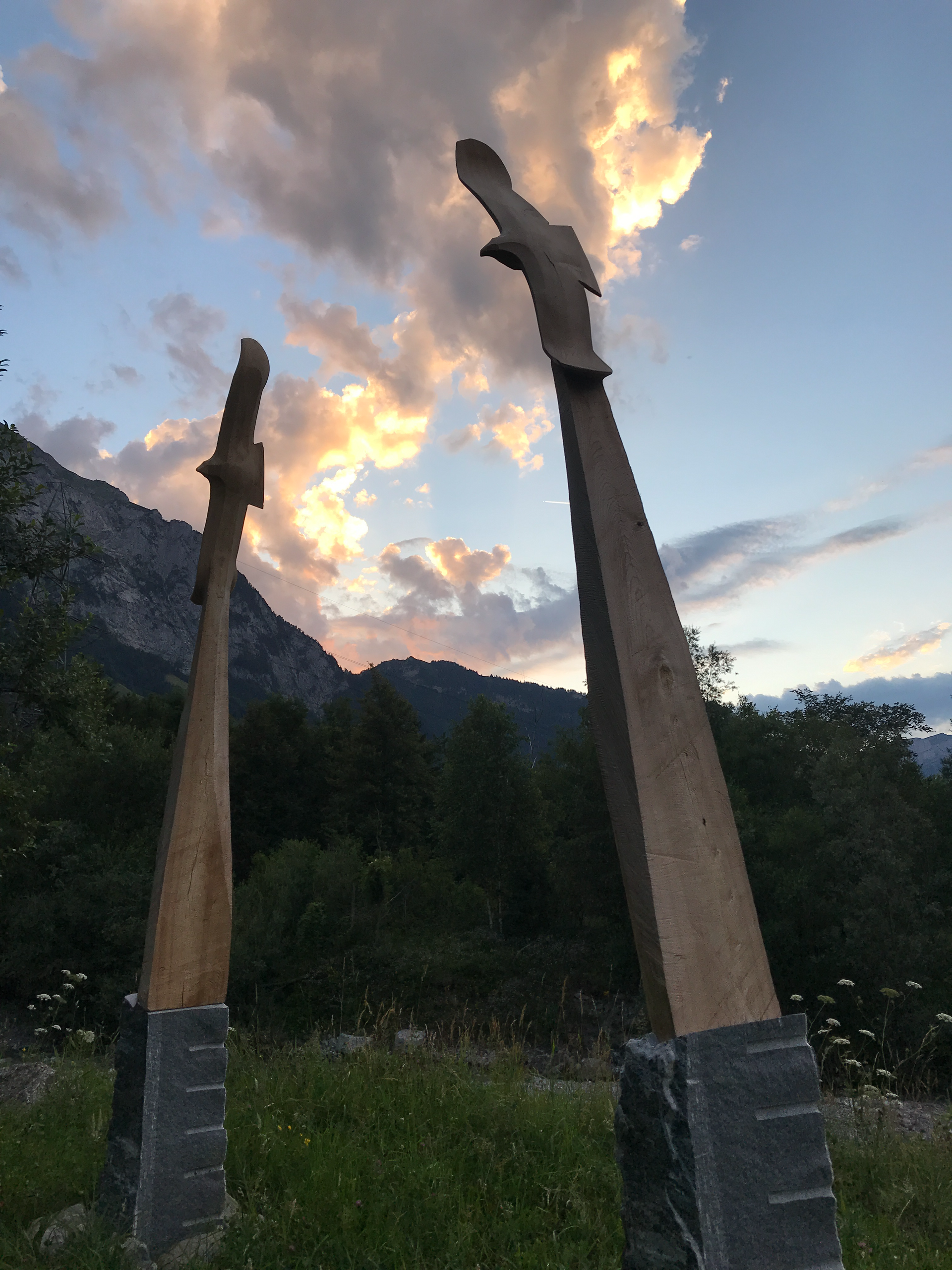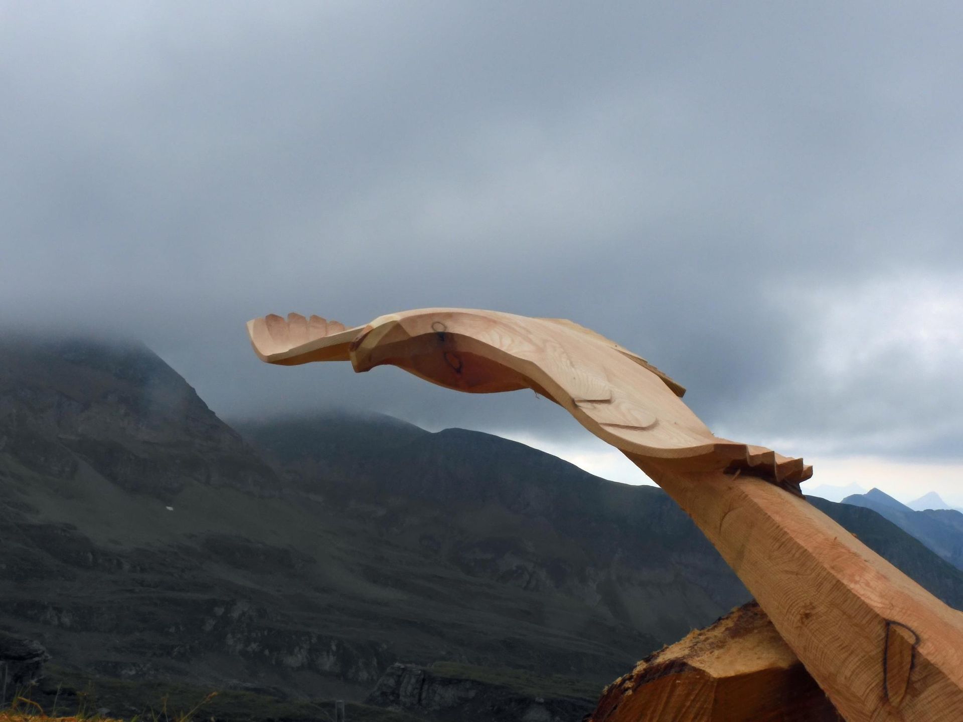 Flying Eagles, in Ulmenholz, geschaffen anlässlich 25 Jahre Alpeninitiative. seit 2024 hat die Alpeninitiative den Namen Pro Alps.