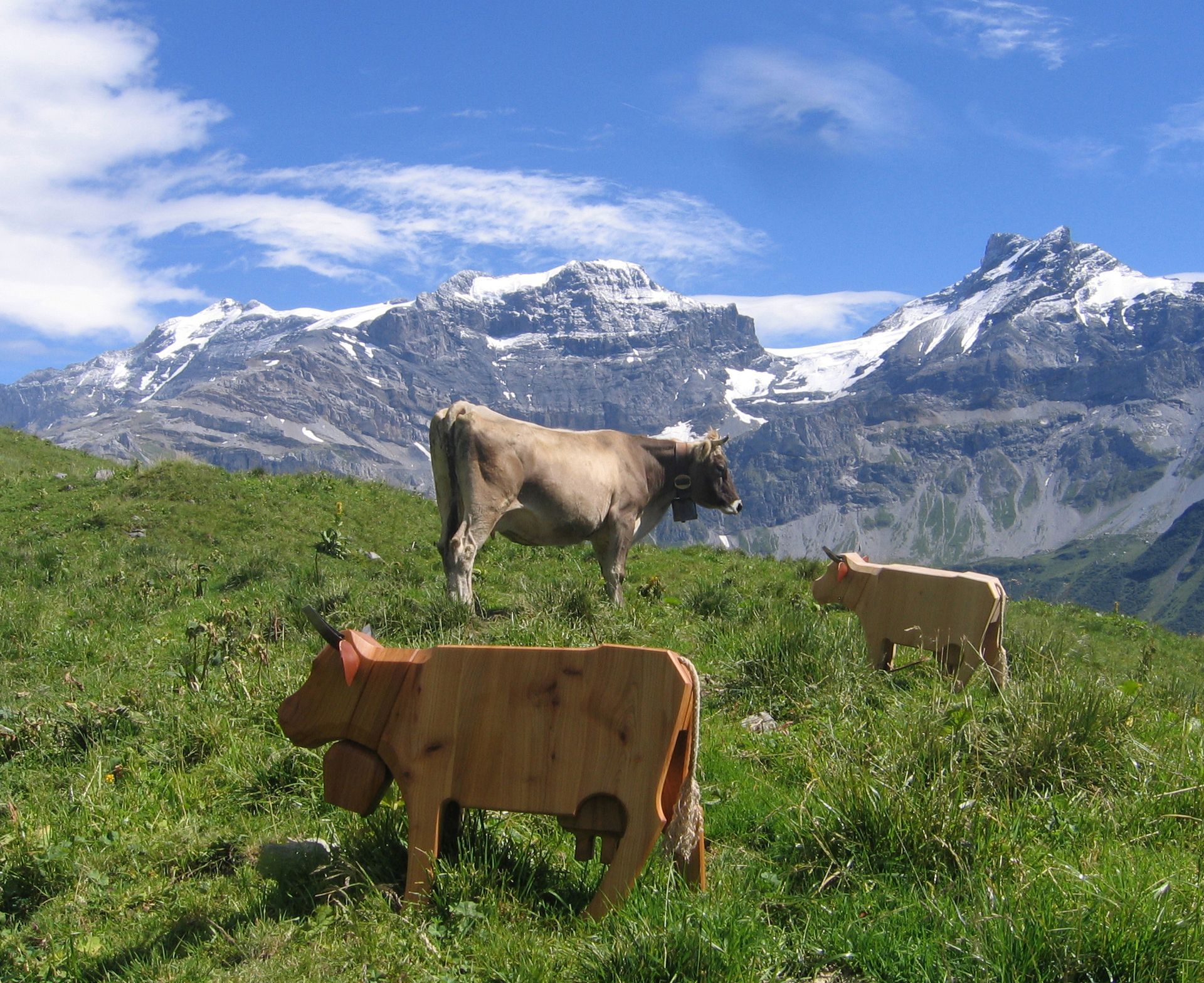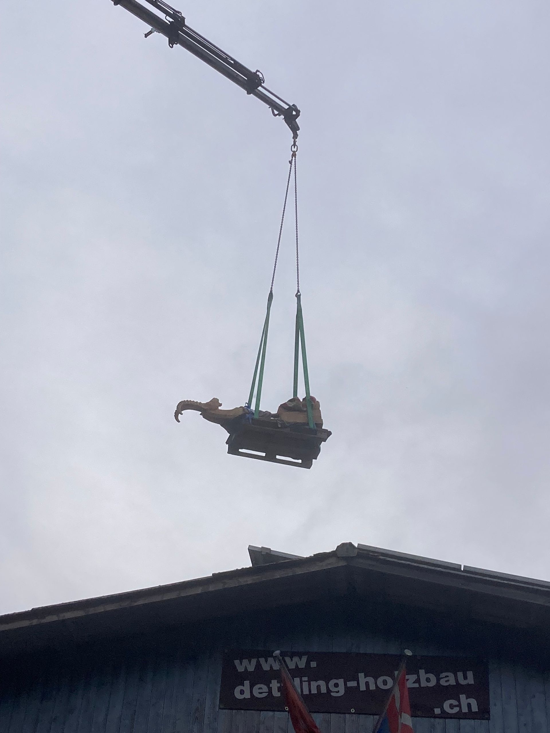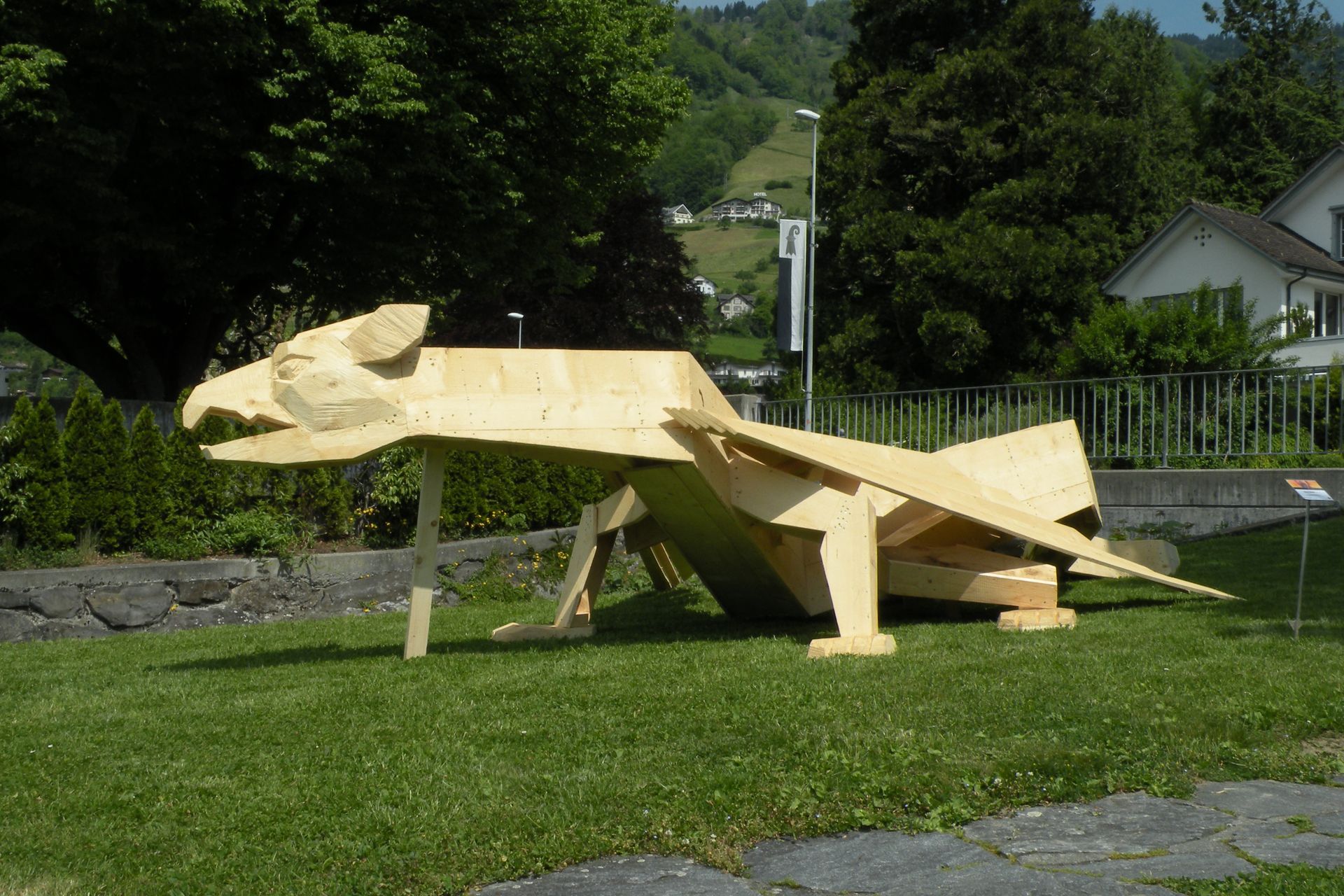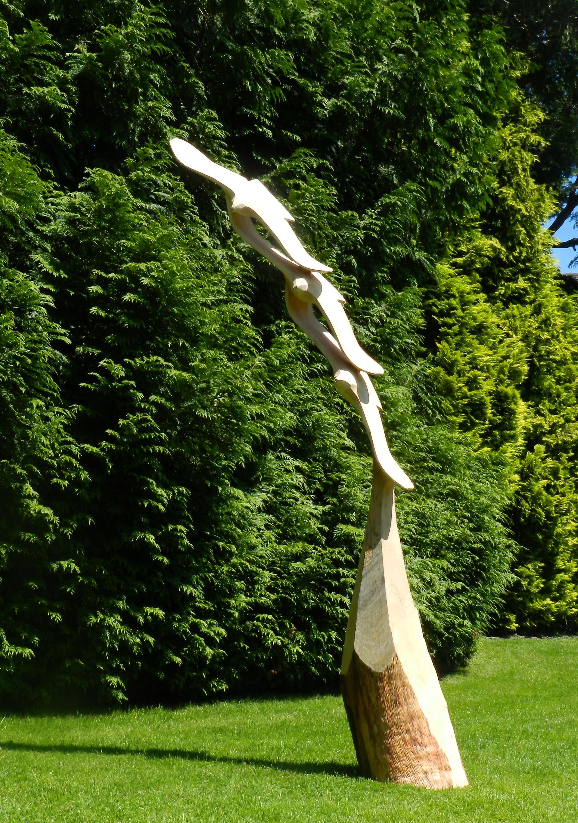 Flying Eagles, in Ulmenholz, geschaffen anlässlich 25 Jahre Alpeninitiative. seit 2024 hat die Alpeninitiative den Namen Pro Alps.