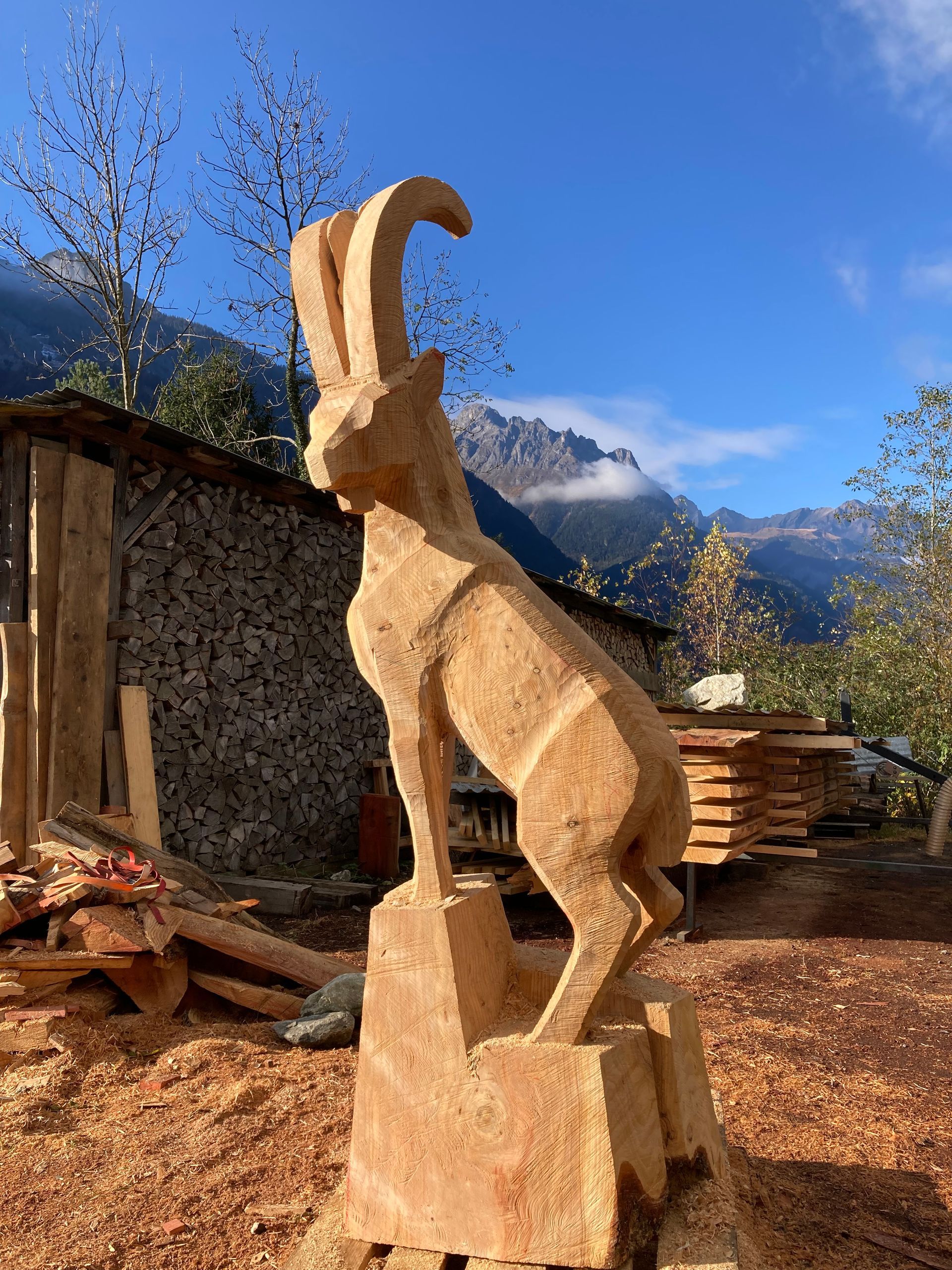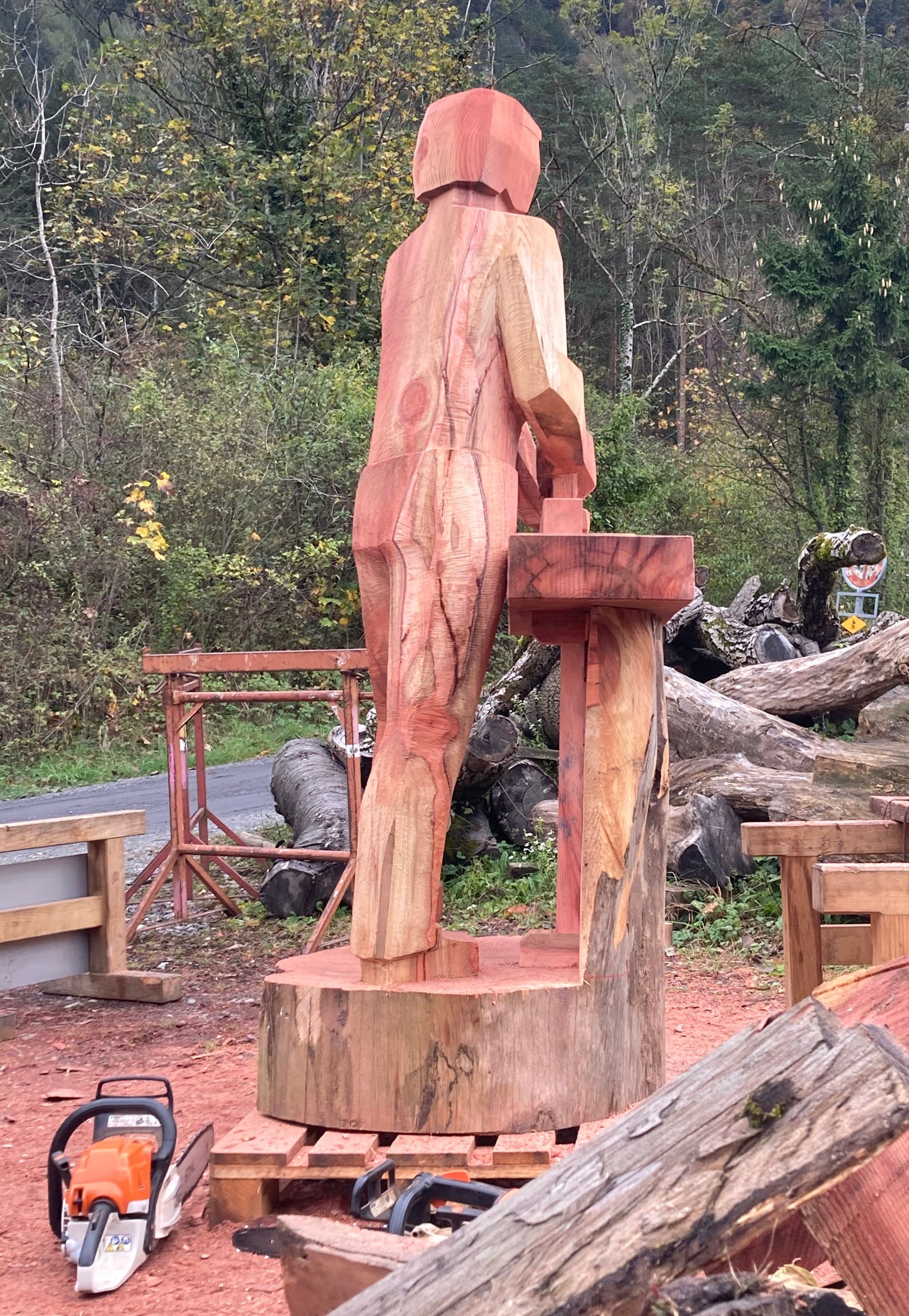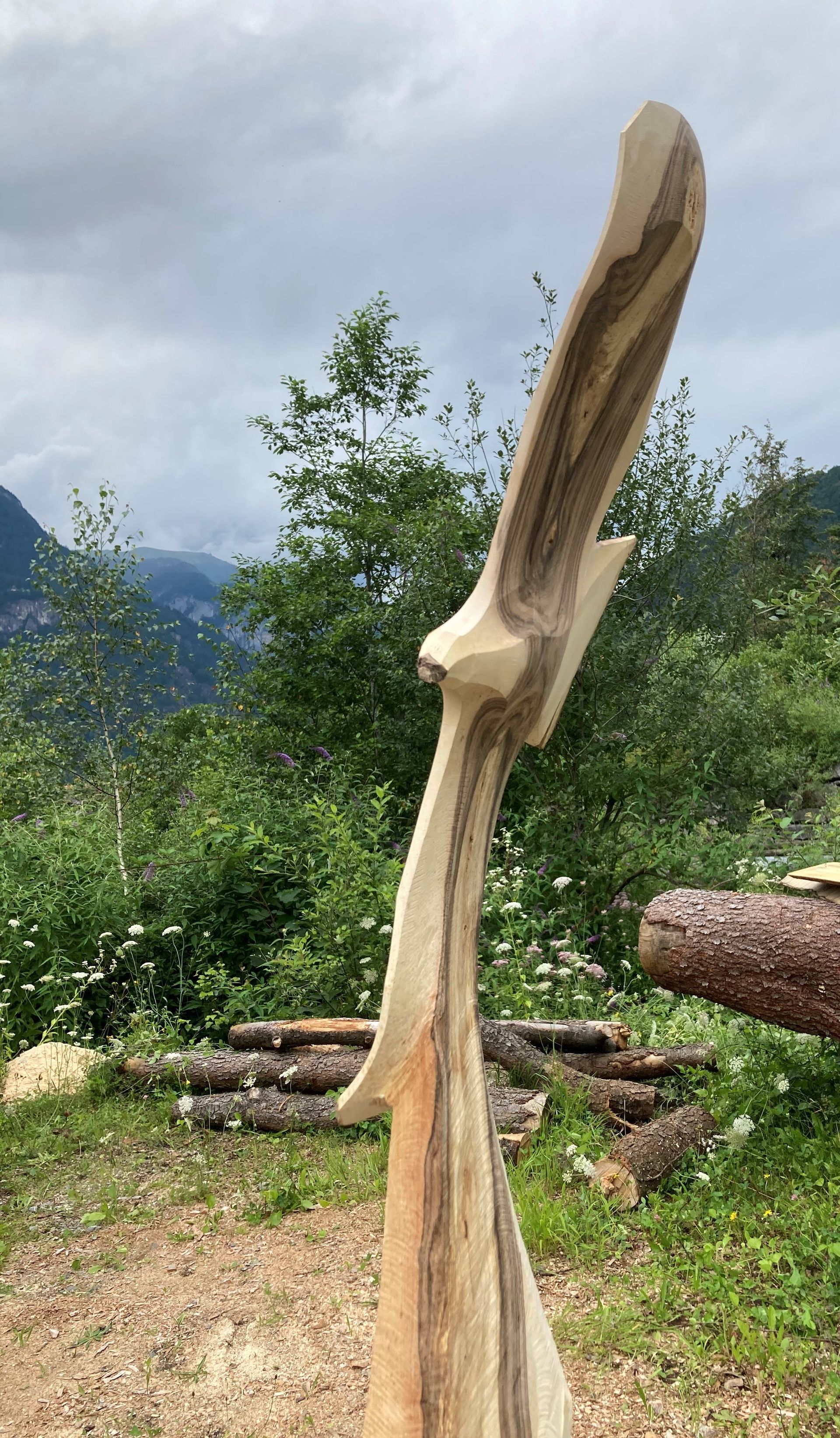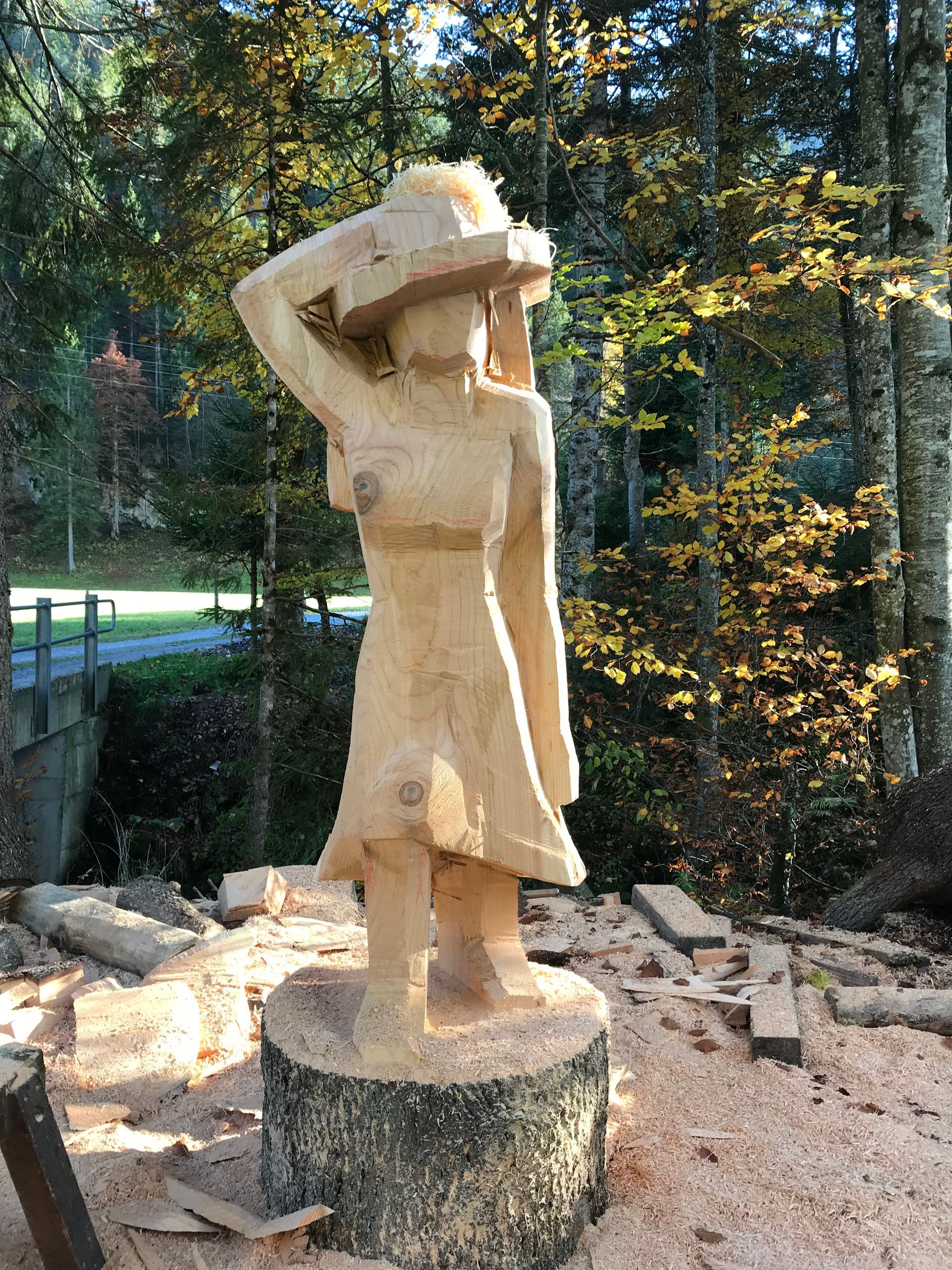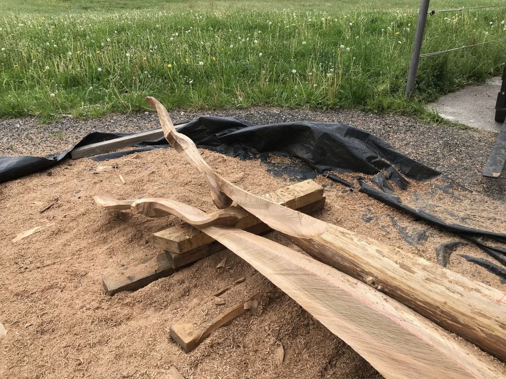 Für meine Kunst verwende ich sorgfältig ausgewählte Baumstämme und Äste aus der Region. Ich arbeite mit Apfelbaum, Kastanie, Lärche, Kirsche und – wenn verfügbar – auch mit Mondholz. Die nachhaltige Nutzung regionaler Ressourcen ist für mich ein wichtiger Bestandteil meiner Arbeit.