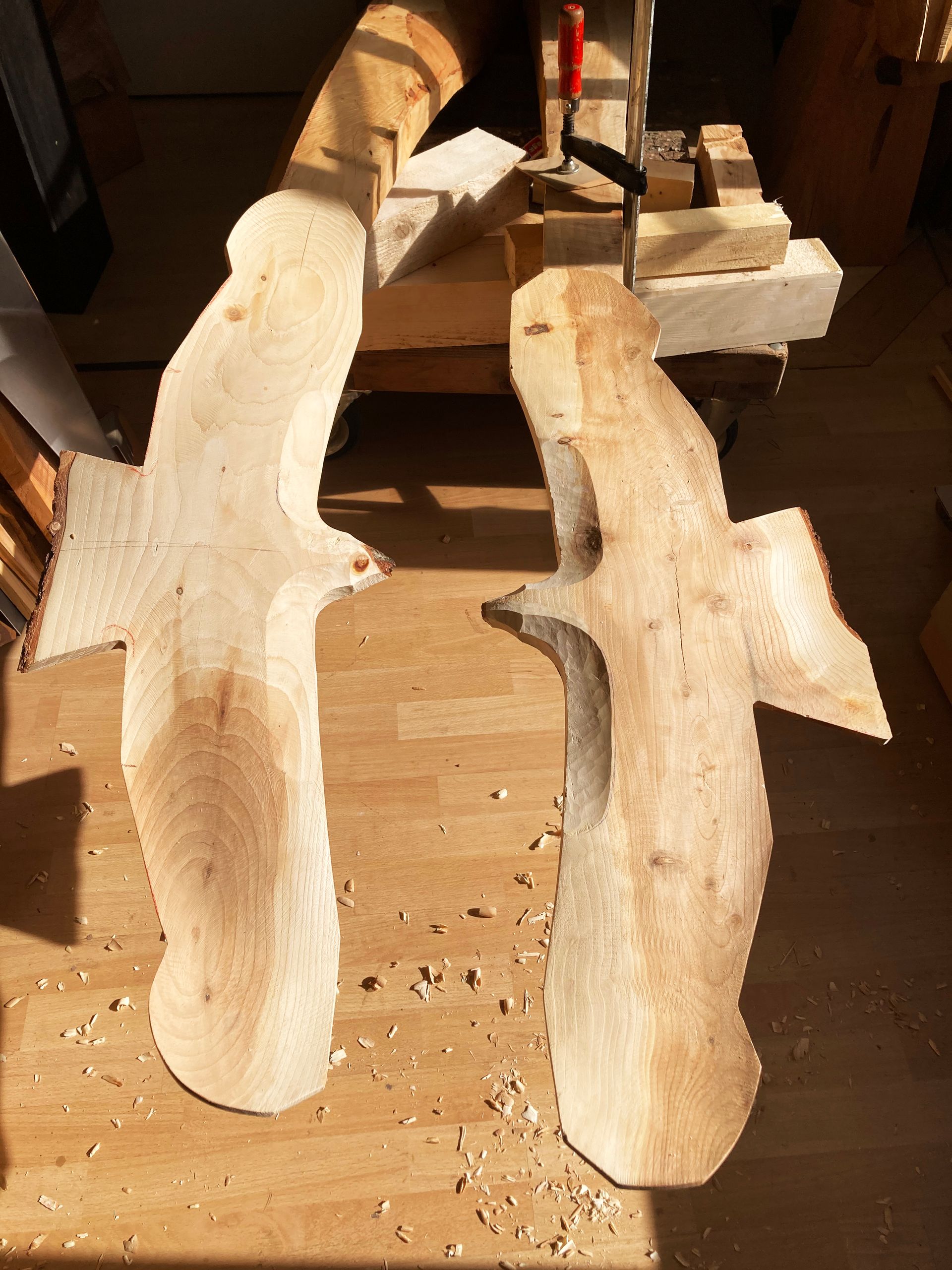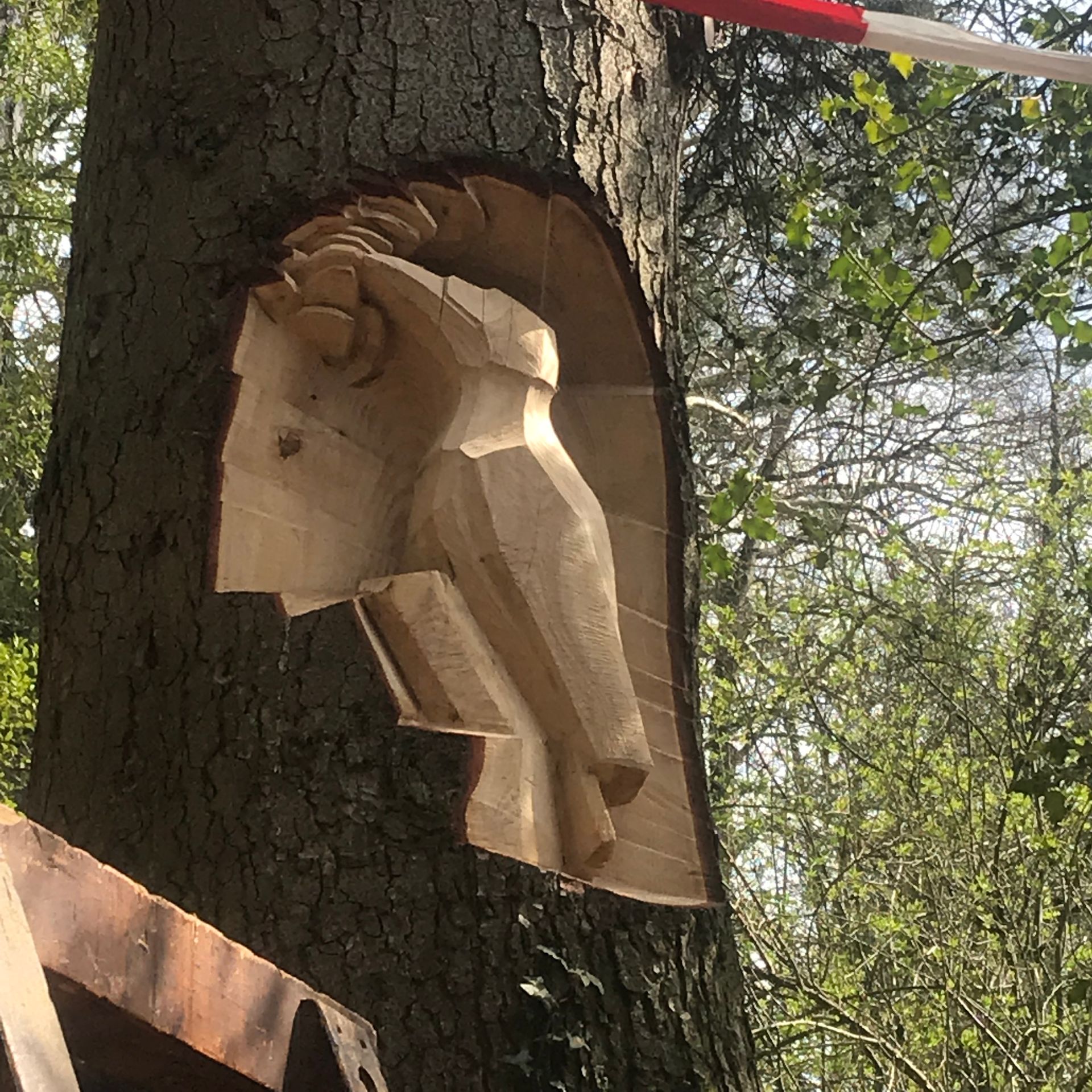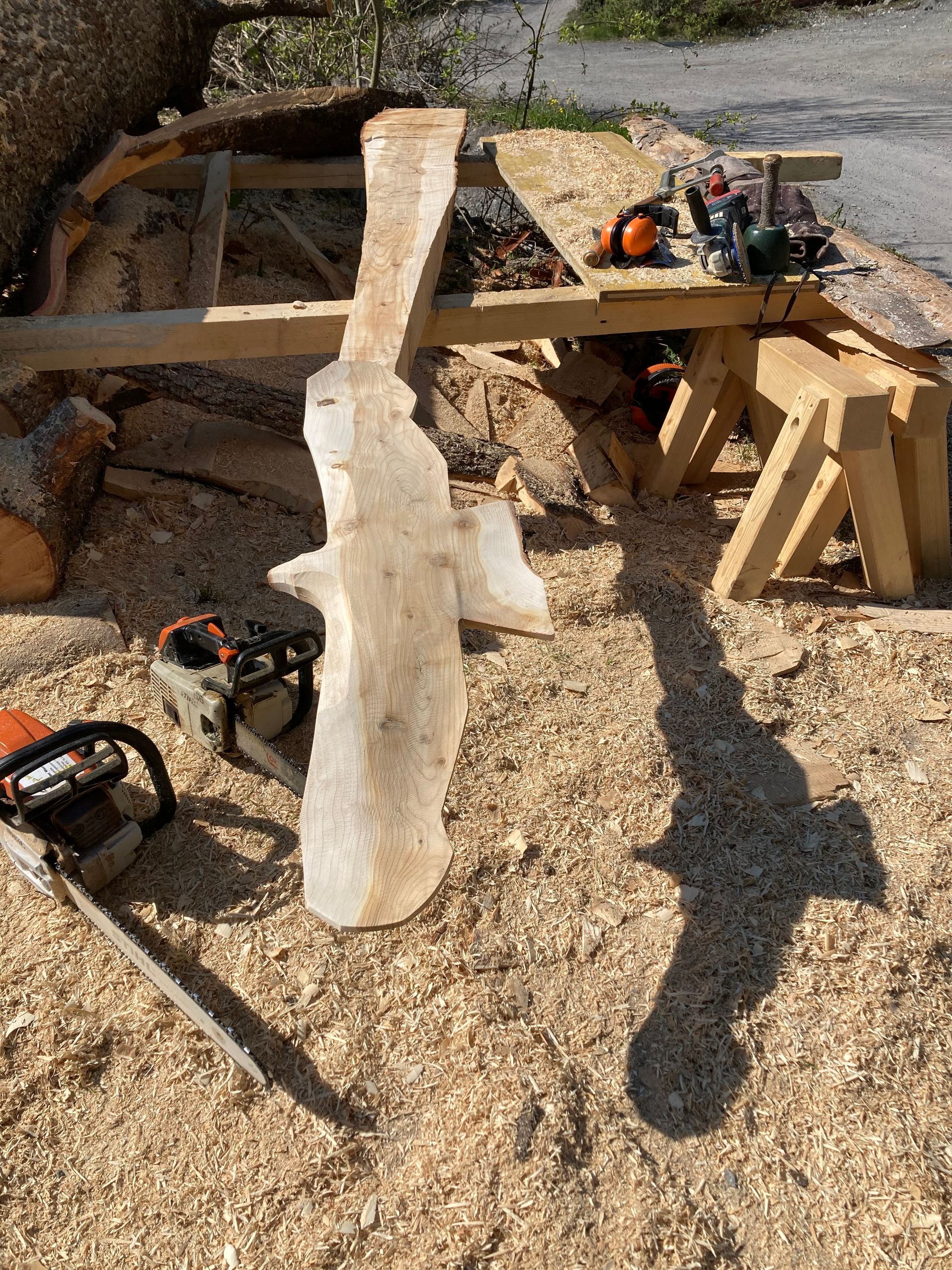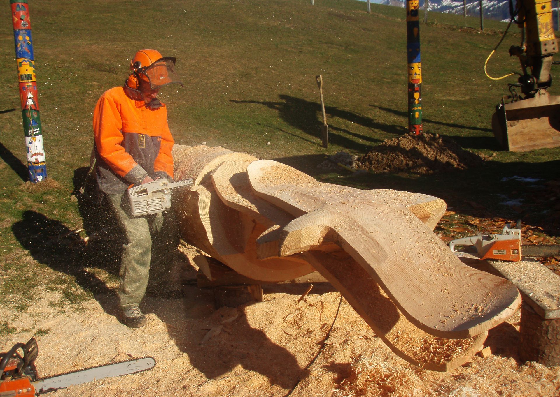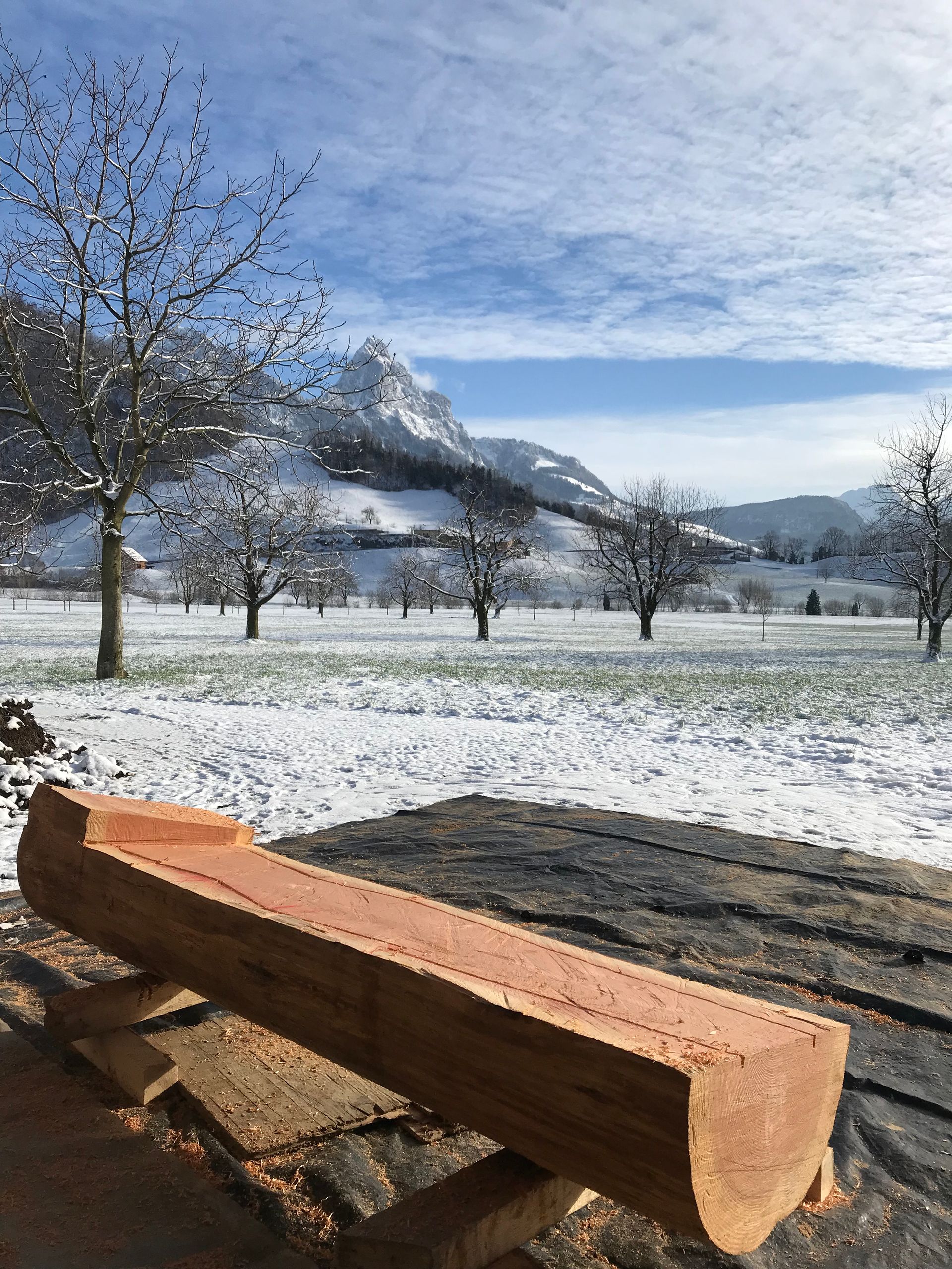 Für meine Kunst verwende ich sorgfältig ausgewählte Baumstämme und Äste aus der Region. Ich arbeite mit Apfelbaum, Kastanie, Lärche, Kirsche und – wenn verfügbar – auch mit Mondholz. Die nachhaltige Nutzung regionaler Ressourcen ist für mich ein wichtiger Bestandteil meiner Arbeit.