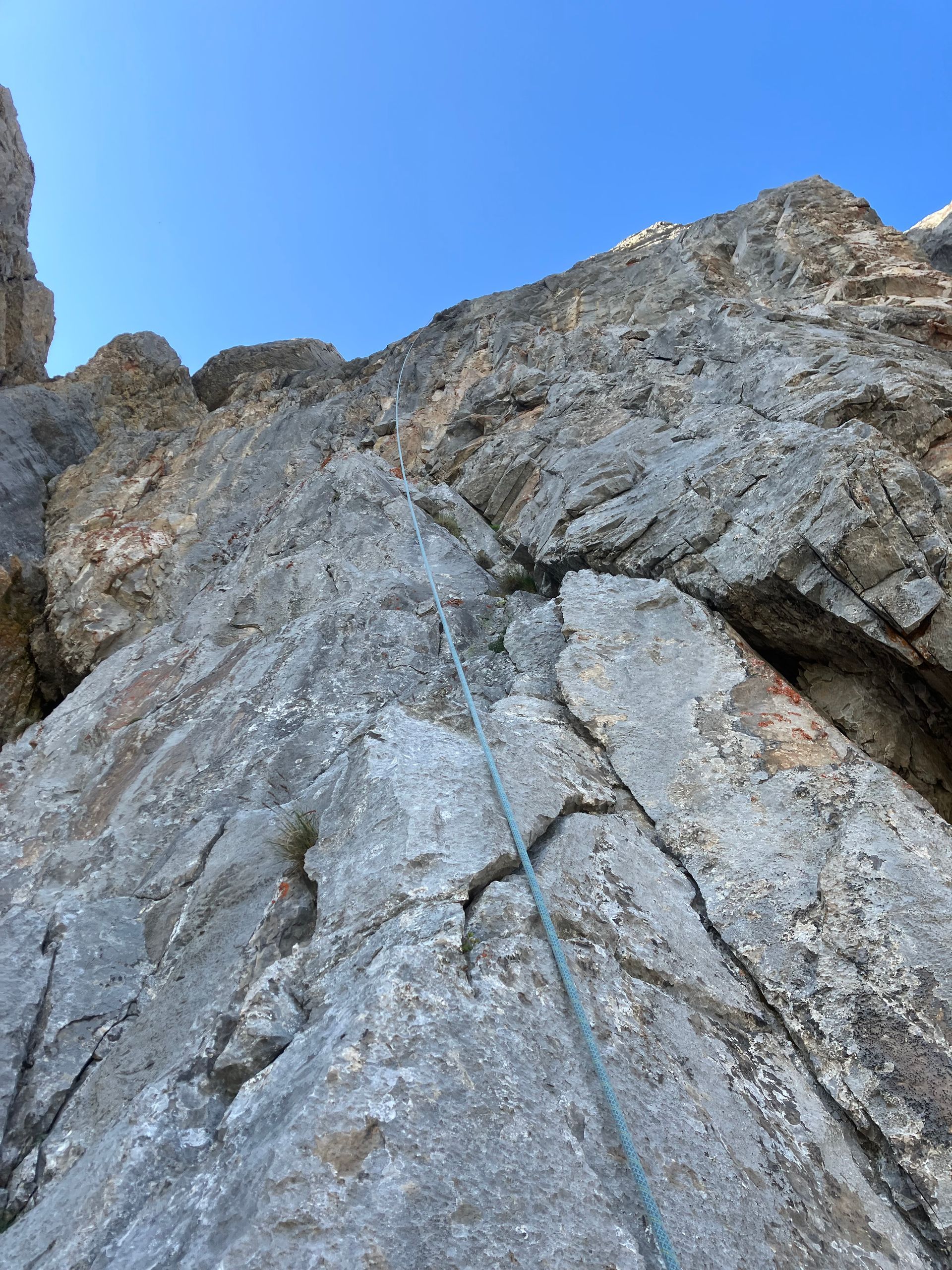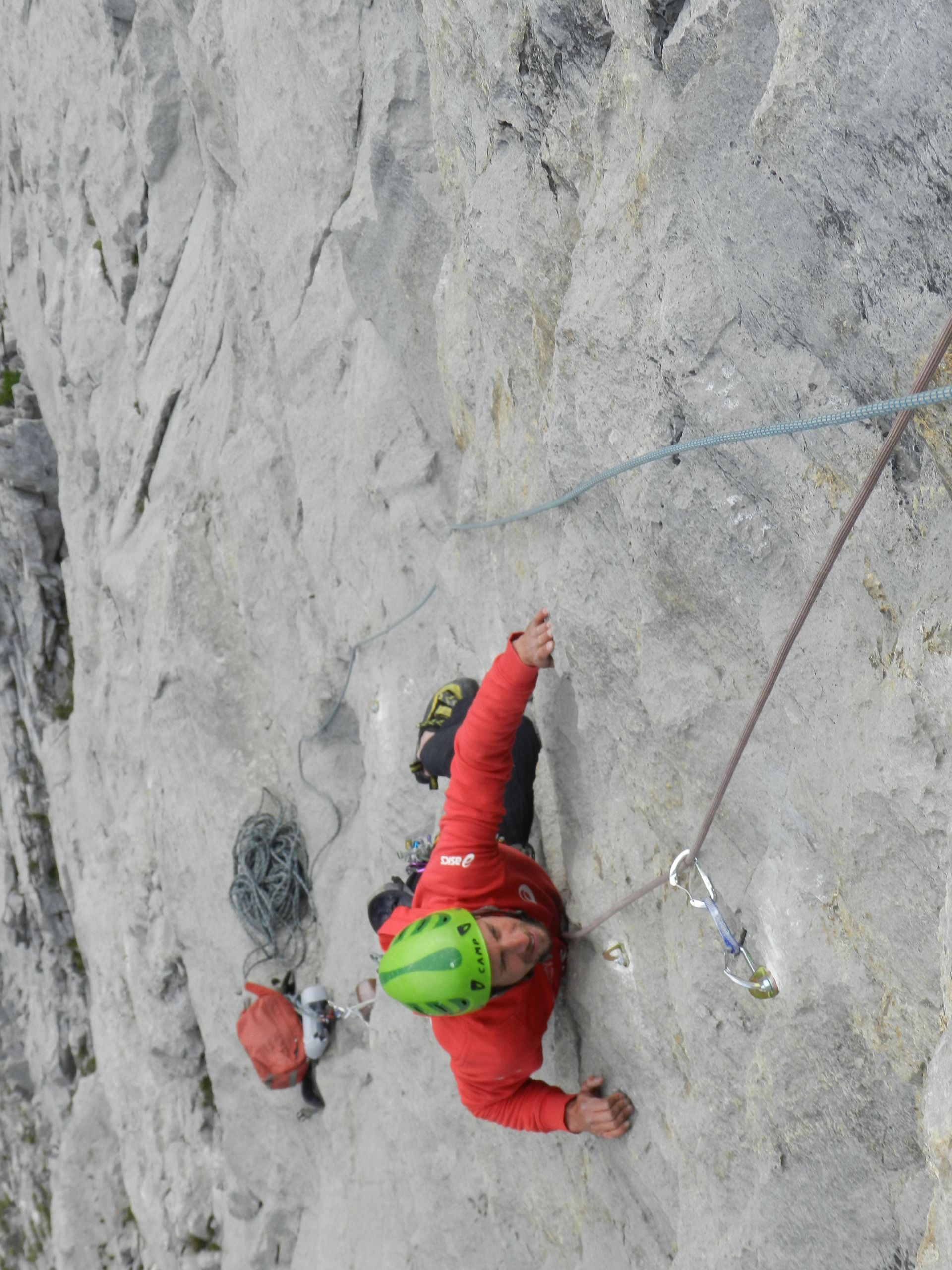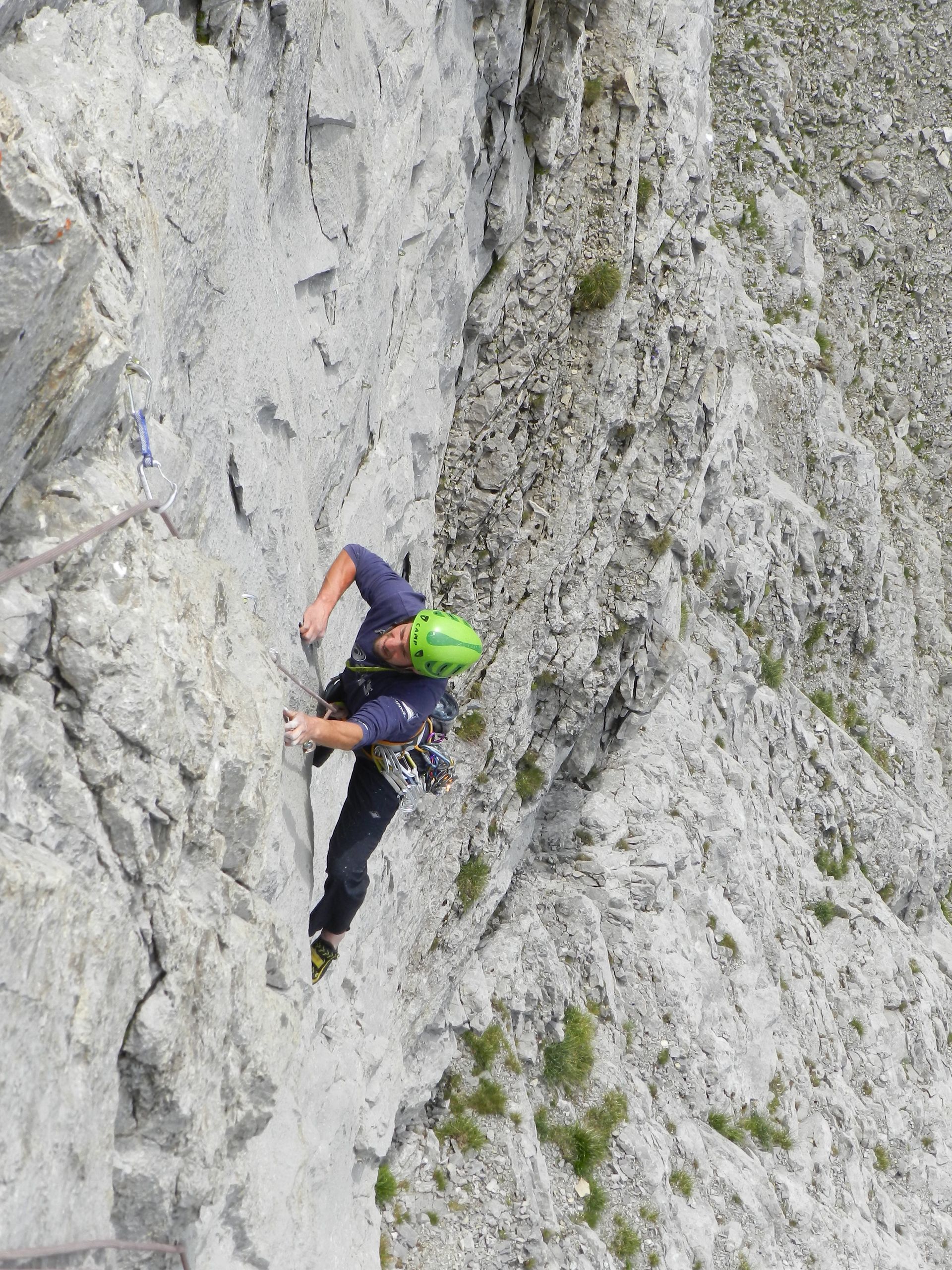 Highlight: Die vierte, sechste und siebte Seillänge führt in fantastischem Fels zum Ausstieg wenige Meter westlich des Gipfels.