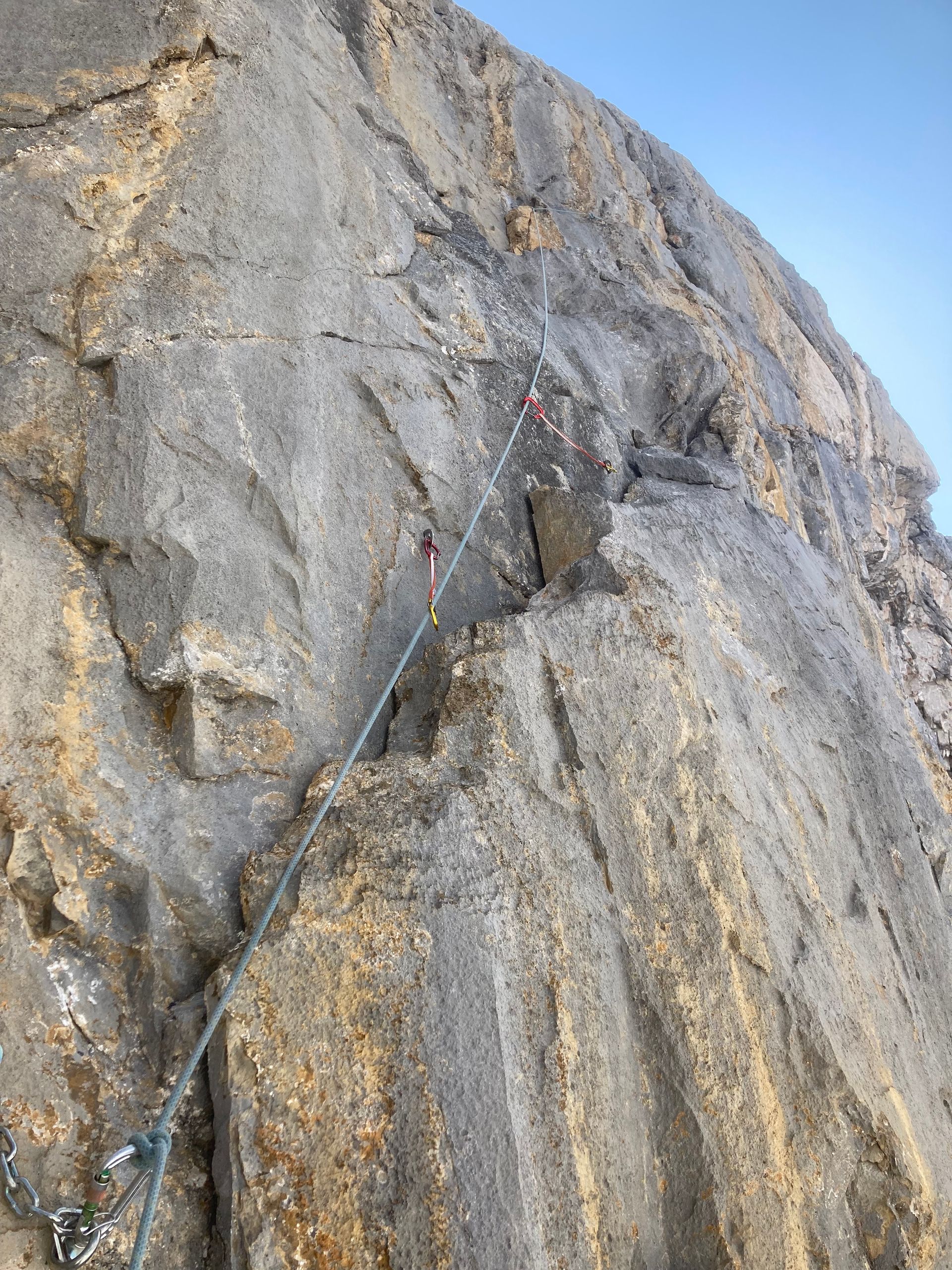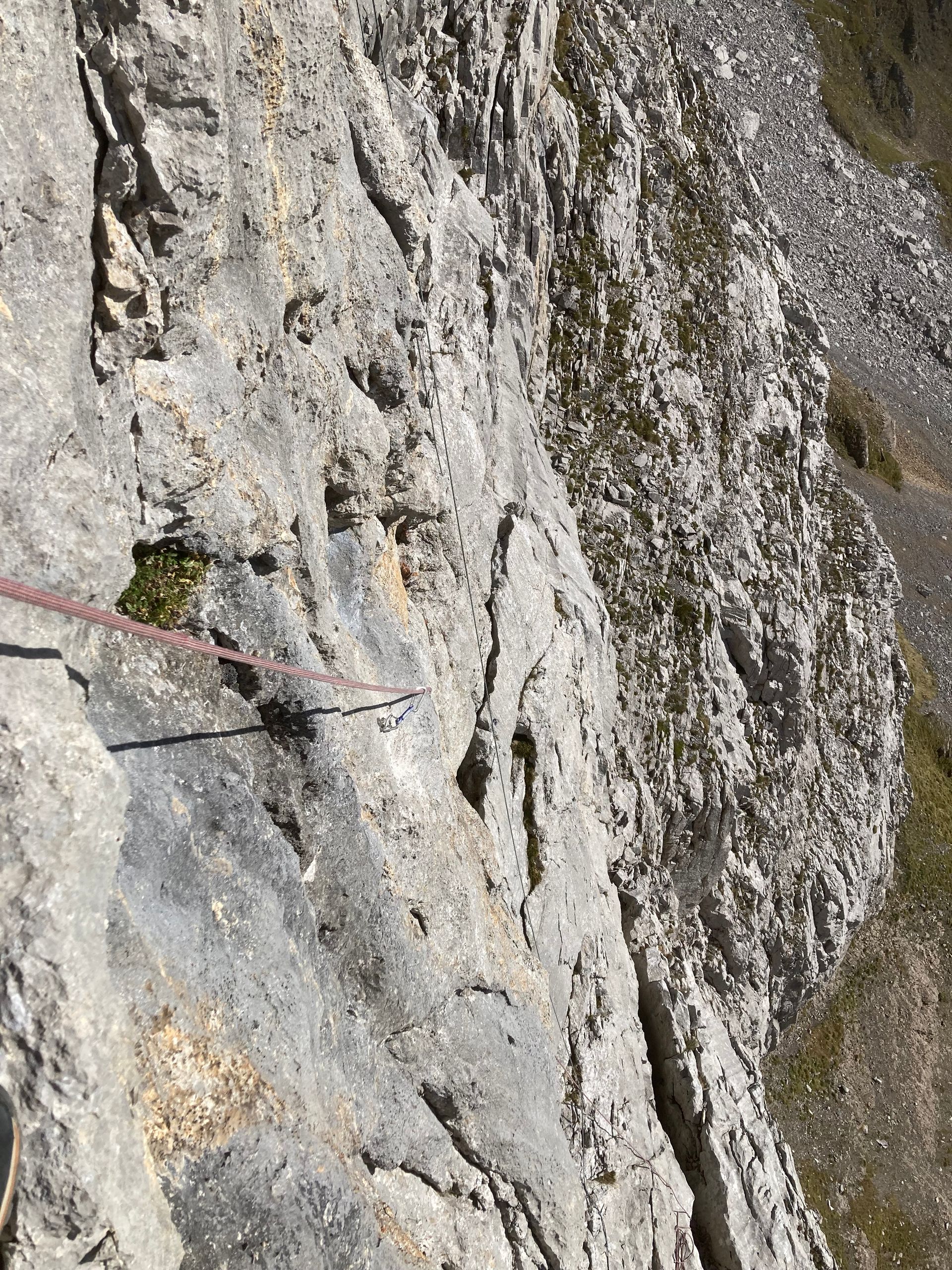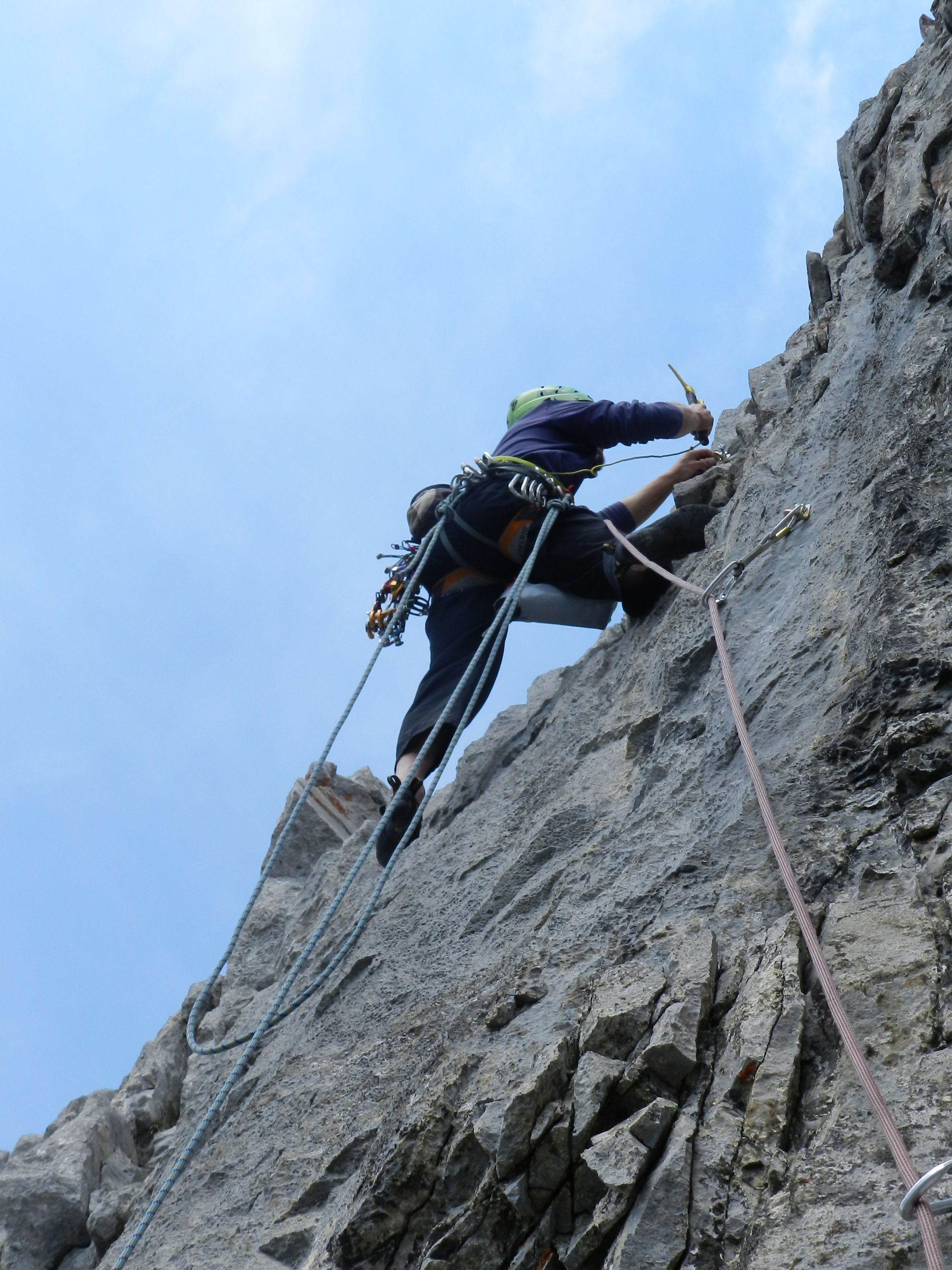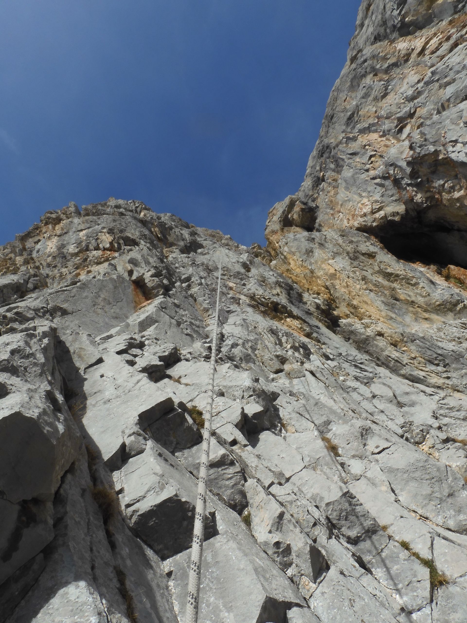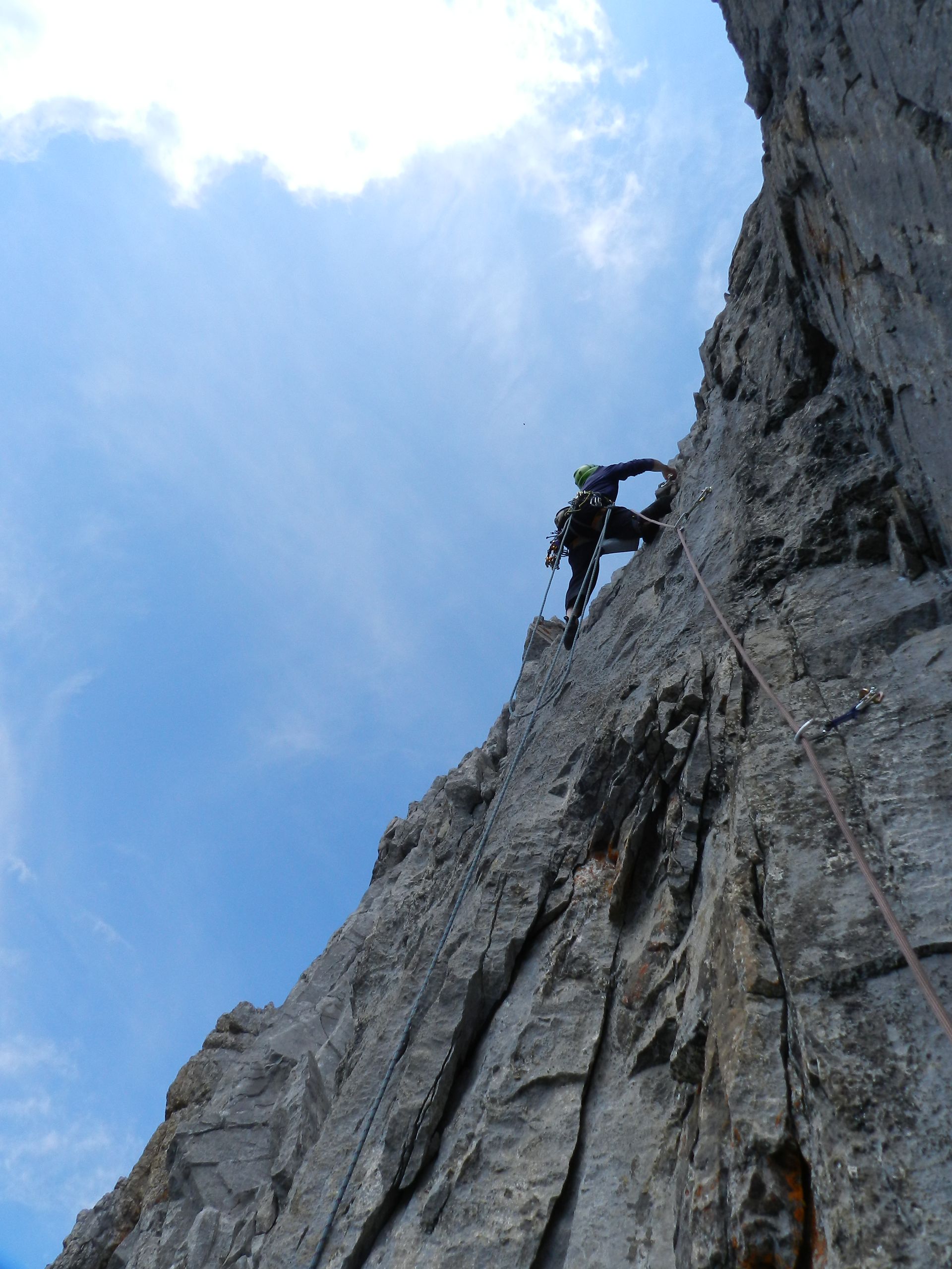 Schwierigkeitsgrad: Fortgeschritten. ein Satz Cams bis Grösse 2 ist für die Wiederholung der Route sehr empfehlenswert.
